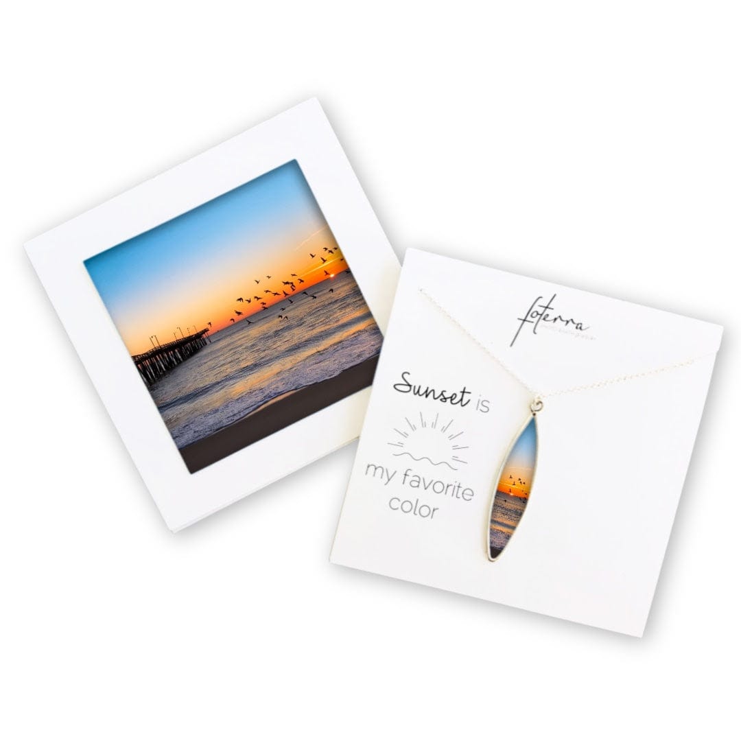 Take flight with this stunning necklace, featuring a beautiful photograph of sea birds flying through an ocean sunset. Made with high quality materials, it's is both stylish and durable. Whether you're dressing up for a night out or just looking for a unique addition to your everyday style, this necklace will make your style soar!